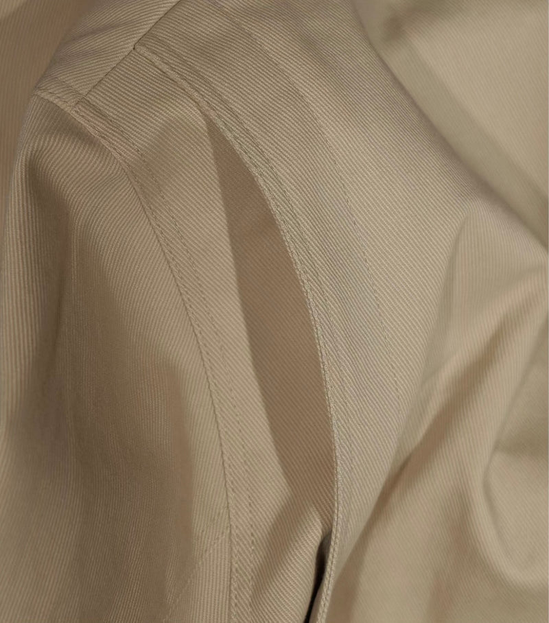 • 100 % Reine Baumwolle (Cavalry Twill): Gefertigt aus hochdichtem (Cavalry Twill). Diese Webart zeichnet sich durch ihre markante, doppelte Diagonalstruktur aus, die historisch für höchste Beanspruchung entwickelt wurde.